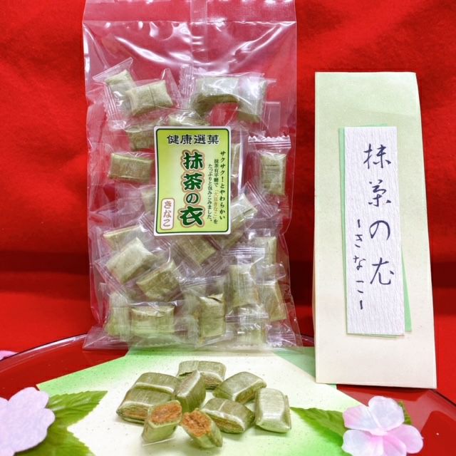 京都宇治抹茶を練り込んだ「抹茶有平」で香り豊かな「きなこ」を包み込みました。抹茶ときな粉の絶妙なハーモニーをお楽しみ頂けます。