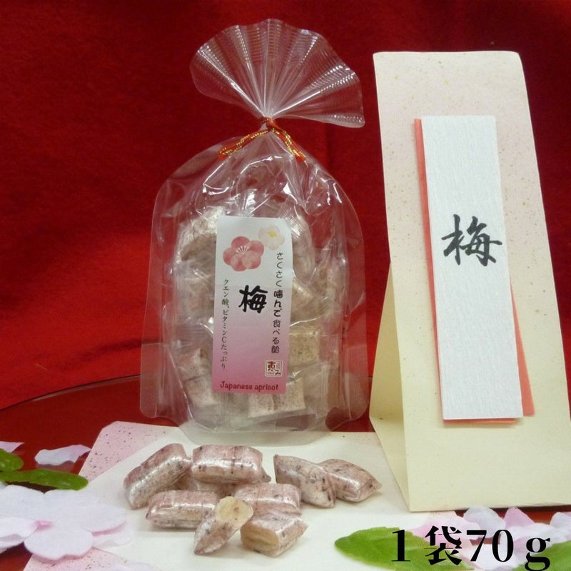 日本の最高級【紀州南高梅】の粉末をたっぷりと有平糖で包み込み地元神奈川県山北町の農家が手づくりで作る濃厚な熟成凝縮梅エキスを配合しました。梅の酸味と旨みが特徴的です。