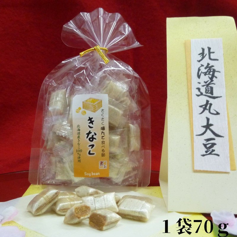 北海道産丸大豆きな粉を100%使用。きなこの香ばしい美味しさが際立つ有平糖です。第27回全国菓子博覧会・伊勢におきましてこの有平糖「きなこ」は金菓賞を受賞致しました。 是非一度ご賞味ください。