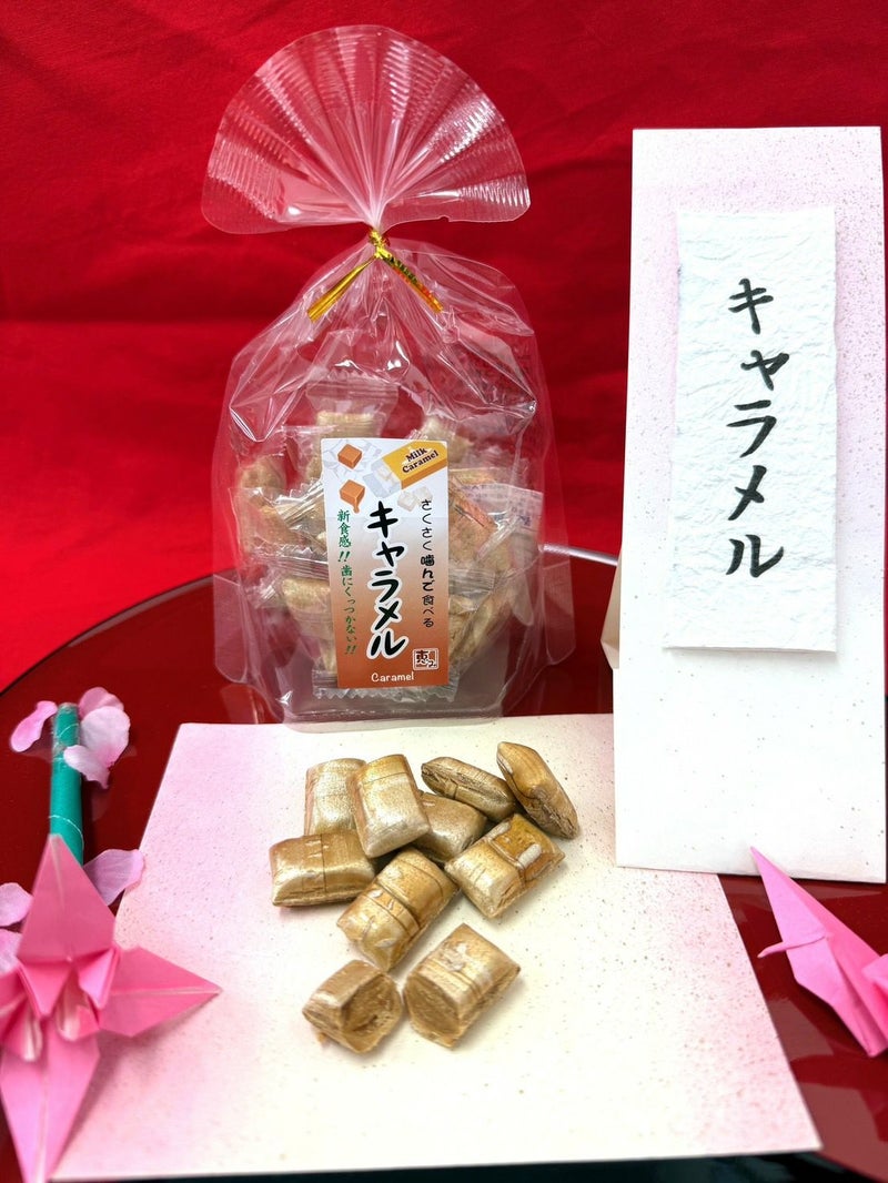 新味!登場!キャラメル有平糖! 歯にくっつかない新食感のサクサク!キャラメル!約500年の歴史を持つ安土桃山時代から続く日本の伝統技術を受け継ぎ、職人の手によって一つ一つ丁寧に作られた逸品です。この有平糖は、秘伝製法によりサクサクとした食感と深い味わいで、小田原の地で愛され続けています。手作りならではの温もりが感じられる形状は、見た目にも楽しいご褒美スイーツ。お土産や贈り物にも最適で、受け取る方の心に残る特別な味わいを提供します。この「有平糖」は、噛むほどに広がる風味が絶品で、一度食べたら忘れられない美味しさです。お取り寄せして、日本の伝統を感じる至福のひとときをお楽しみください。